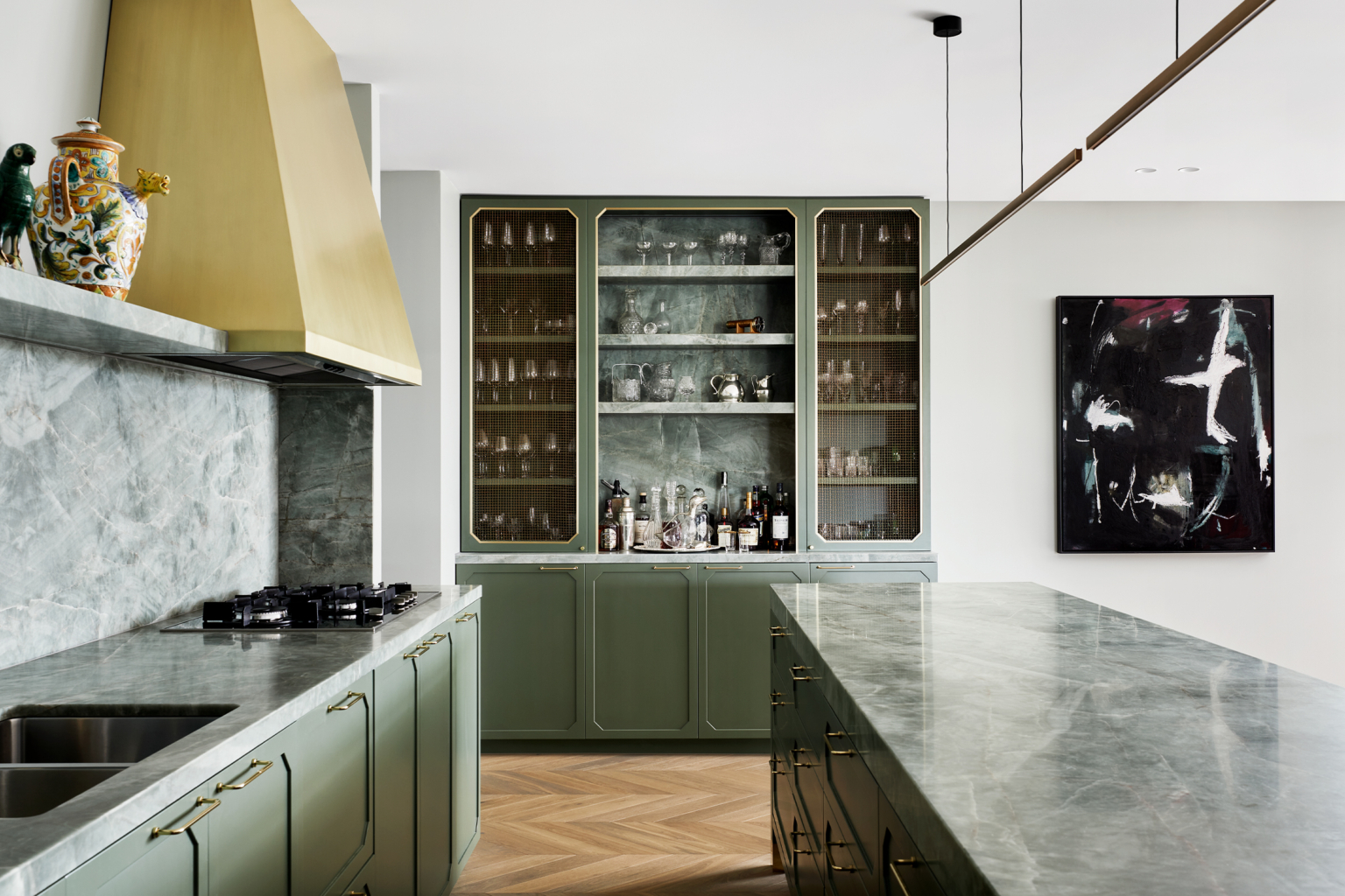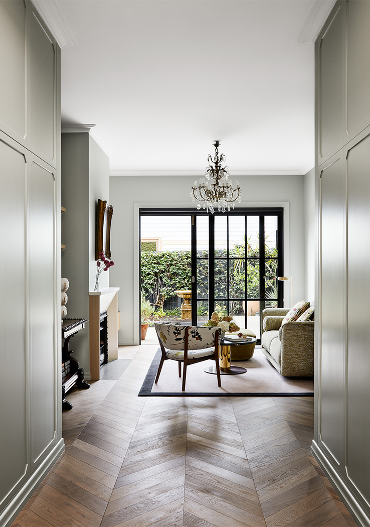 Detailing and materiality reflect a ‘classic contemporary’ approach, from the chevron timber floor to the use of polished and brushed brass and the modern take on traditional panelling, designed to reflect the uniqueness of the owners.