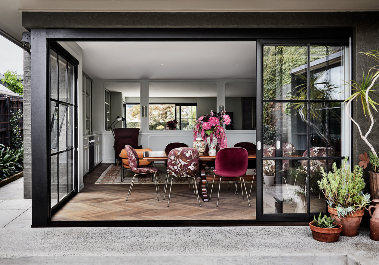 Key pieces of existing furniture were retained and reimagined through new, adventurous fabrics and paired with modern pieces to create an eclectic mix, while colours used mirror the optimistic spirit of the owners.